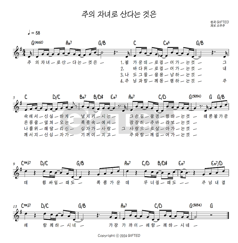 | 기프티드 (GIFTED) '주를 바라보며' 악보 / 가사 / 송폼 / 영상 / ppt (0) | 2026.01.02 |